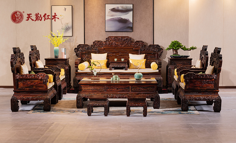 產(chǎn)品名稱:天勤紅木 紅木家具印尼黑酸枝(學(xué)名:闊葉黃檀)碩果累累沙發(fā)客廳系列13件套
