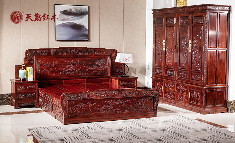 盛世和諧山水床紅酸枝,東陽天勤紅木家具廠家直銷,材質百分百保真,無其他輔料,林業(yè)部門鑒定機構監(jiān)督鑒定,廣大紅木家具愛好者可以放心購買,歡迎到廠家實地考察